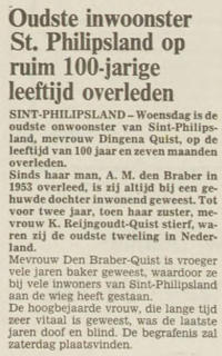 Stamreeks: generatie 1: Willem Hendrick Cornelisz de Vrome & Dingena Jan Gerrits Wolff. generatie 2: Cornelis Willemse de Vrome & Maatje Willemsdr de Cramere. generatie 3: Aren Cornelisse Braber & Leentje Leendertsdr. generatie 4: Cornelis Arense Braber & Teuntje Vincentse Stadshouck. generatie 5: Vincent Cornelisse den Braber & Commertje Bestmanse de Wayer. generatie 6: Bestman Centse den Braber & Jacomijntje Jacht. generatie 7: Vincent den Braber & Neeltje Boogaard. generatie 8: Maarten den Braber & Cornelia Wagemaker. generatie 9: Vincent den Braber & Jozina van der Velde. generatie 10: Dingenus Cornelis den Braber en Maria Adriana Kempeneers. generatie 11: Adriana den Braber & Pieter Kaashoekden Braber: lees meer op
