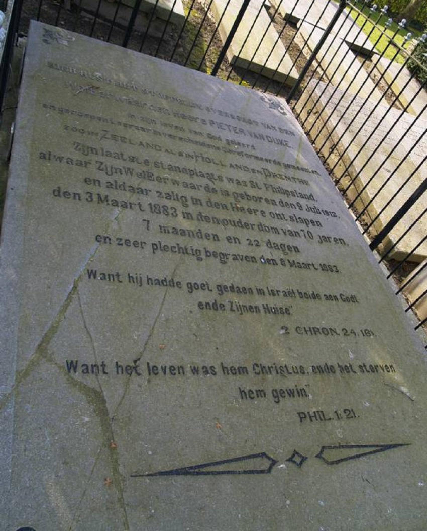 Hier rust het stoffelijk overschot van den WelEerwaarden Heer PIETER VAN DIJKE,