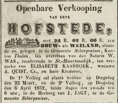 1LeunisJanLenaertszQuistisgeborenin1540inOuwerkerk.Leunisisoverledeninjanuari1616inOud-Vossemeer,75of76jaaroud.LeunistrouwdemetMaijkenGeerts.Maijkenisgeborenin 1540. Maijken is overleden in juli 1612 in Oud-Vossemeer, 71 of 72 jaar oud. Kinderen van Leunis en Maijken:1.1. Quirijn Leunisz Quist, geboren omstreeks 1565 in Ouwerkerk. Volgt - stamreeks…1.2.BastiaanLeuniszQuistisgeborenomstreeks1575inOuwerkerk,zoonvanLeunisJanLenaertszQuist(1)enMaijkenGeerts.Bastiaanisoverleden.Bastiaantrouwde,ongeveer25jaar oud, omstreeks 1600 in Ouwerkerk met Pieterke Marinusse, ongeveer 24 jaar oud. Pieterke is geboren omstreeks 1576. Pieterke is overleden. Kinderen van Bastiaan en Pieterke:1.2.1. Willem Quist, geboren omstreeks 1600 in Ouwerkerk. Willem is overleden. 1.2.2.MarinusBastiaenszQuistisgeborenomstreeks1610inOuwerkerk,zoonvanBastiaanLeuniszQuist(1.2)enPieterkeMarinusse.Marinusisoverledenomstreeks1683in Ouwerkerk,ongeveer73jaaroud.Marinustrouwde,ongeveer30jaaroud,omstreeks1640inOuwerkerkmetJannekeJans,ongeveer30jaaroud.Jannekeisgeborenomstreeks 1610. Janneke is overleden. 1.3. Balten Leunisz Quist, geboren in 1575 in Ouwerkerk. Balten is overleden. 1QuirijnLeuniszQuistisgeborenomstreeks1565inOuwerkerk,zoonvanLeunisJanLenaertszQuist(1)enMaijkenGeerts.Quirijnisoverledenna9juli1626inStavenisse,minstens61jaar oud.Quirijntrouwde,ongeveer27jaaroud,omstreeks1592metLysebethJacobs,ongeveer27jaaroud.Lysebethisgeborenomstreeks1565inStavenisse,dochtervanN.N.Jacobs.Lysebethis overleden omstreeks november 1637 in Stavenisse, ongeveer 72 jaar oud. Kinderen van Quirijn en Lysebeth:1.1. Cornelis Quirijnsz Quist, geboren omstreeks 1592 in Ouwerkerk. Volgt - stamreeks…1.2.JacobusCrijnseQuistisgeborenin1593inOuwerkerk,zoonvanQuirijnLeuniszQuist(2)enLysebethJacobs.Jacobusisoverleden.Jacobustrouwde,29of30jaaroud,op12februari 1623inStavenissemetSusannekeKrijns,ongeveer33jaaroud,nadatzijop10december1622inStavenisseinondertrouwzijngegaan.Susannekeisgeborenomstreeks1590inOud-Vossemeer. Susanneke is overleden in 1641 in Nieuw-Vossemeer, ongeveer 51 jaar oud. 1.3. Pauwlijntje Crijnse Quist, geboren omstreeks 1595 in Stavenisse. Pauwlijntje is overleden vóór 1598 in Stavenisse, ten hoogste 3 jaar oud. 1.4.PauwlijntjeCrijnseQuistisgeborenomstreeks1598inStavenisse,dochtervanQuirijnLeuniszQuist(1)enLysebethJacobs.Pauwlijntjeisoverleden.Pauwlijntje(1)trouwde,ongeveer 30jaaroud,op9april1628inStavenissemetGeertBraber,ongeveer30jaaroud.Geertisgeborenomstreeks1598inGoirle.Geertisoverledenvóór1642in’s-Hertogenbosch,ten hoogste 44 jaar oud. Pauwlijntje (2) ging in ondertrouw, ongeveer 44 jaar oud, op 1 november 1642 in Stavenisse met Hubrecht Cornelissen. Hubrecht is geboren in Stavenisse. Kinderen van Pauwlijntje en Geert:1.4.1. Geert Braber. Hij is gedoopt op 7 oktober 1630 in Stavenisse. Geert is overleden. 1.4.2. Crijn Braber. Hij is gedoopt op 20 oktober 1631 in Stavenisse. Crijn is overleden. 1.4.3. Willem Braber. Hij is gedoopt op 6 maart 1633 in Stavenisse. Willem is overleden. 1.4.4. Adriaentje den Braber. Zij is gedoopt op 16 december 1635 in Stavenisse. Adtriaentje is overleden. 1.5. Leuntje Crijnse Quist, geboren omstreeks 1605 in Stavenisse. Leuntje is overleden. 1.6.NeelkenCrijnseQuistisgeborenomstreeks1607inStavenisse,dochtervanQuirijnLeuniszQuist(1)enLysebethJacobs.Neelkenisoverledenomstreeks1652inStavenisse,ongeveer 45jaaroud.Neelkentrouwde,ongeveer35jaaroud,op3augustus1642inScherpenissemetJacobusBaltensen,ongeveer39jaaroud.Jacobusisgeborenomstreeks1603inStavenisse. Jacobus is overleden op 10 maart 1658 in Stavenisse, ongeveer 55 jaar oud. Kinderen van Neelken en Jacobus:1.6.1. Pieternella Baltensen. Zij is gedoopt op 29 november 1643 in Stavenisse. Pieternella is overleden. 1.6.2. Crijntje Baltensen. Zij is gedoopt op 5 augustus 1646 in Stavenisse. Crijntje is overleden. 1.6.3. Marinus Baltensen. Hij is gedoopt op 5 april 1649 in Stavenisse. Marinus is overleden vóór 1652 in Stavenisse, ten hoogste 3 jaar oud. 1.6.4. Marinus Baltensen. Hij is gedoopt op 28 januari 1652 in Stavenisse. Marinus is overleden. 1.7. Marinus Quist, geboren omstreeks 1609 in Stavenisse. Marinus is overleden. 1CornelisQuirijnszQuistisgeborenomstreeks1592inOuwerkerk,zoonvanQuirijnLeuniszQuistenLysebethJacobs.Cornelisisoverleden op4augustus1667inStavenisse,ongeveer75jaaroud.Cornelis(1)trouwde,ongeveer24jaaroud,op24september1616inStavenissemet JannekeJanseJonckswaegers,ongeveer26jaaroud,nadatzijop4september1616inStavenisseinondertrouwzijngegaan.Jannekeis geborenomstreeks1590inMiddelburg,dochtervanJanJanseJonckswaegersenLeunken.Jannekeisoverledenop2augustus1631in Scherpenisse, ongeveer 41 jaar oud. Cornelis(2)trouwde,ongeveer39jaaroud,op10september1631inScherpenissemetNeelkenJans,26jaaroud.Neelkenisgeborenop31 oktober 1604 in Westkerke, dochter van Jan Jacobse en Mayke Theeus. Neelken is overleden in 1660 in Stavenisse, 55 of 56 jaar oud. Kinderen van Cornelis en Janneke:1.1. Jan Quist, geboren op 20 augustus 1617 in Stavenisse. Jan is overleden. 1.2. Lieventje Quist, geboren in 1619 in Stavenisse. Lieventje is overleden in 1620 in Stavenisse, 0 of 1 jaar oud. 1.3. Lieventje Cornelisse Quist, geboren op 27 december 1620 in Stavenisse. Lieventje is overleden. 1.4. Crijn Quist, geboren in juli 1622 in Stavenisse. Crijn is overleden. 1.5.MarikenCornelisseQuist,geborenin1623inStavenisse.Marikenisoverledenomstreeks1632inScherpenisse,ongeveer9jaar oud. 1.6.JeremiasCornelisseQuist,zoonvanCornelisQuirijnszQuist(1)enJannekeJanseJonckswaegers.Hijisgedooptop22januari1625 inStavenisse.Jeremiasisoverledenop11januari1680inStavenisse,54jaaroud.Jeremiastrouwde,22jaaroud,op24april1647in StavenissemetNeeltjeDomus,21jaaroud.Neeltjeisgeborenop26maart1626inOud-Kempenshofstede,dochtervanDomus LambregtsenAdriaantjeJoosvanderSlikke.Zijisgedooptop26maart1626inOud-Kempenshofstede.Neeltjeisoverledenop15 november 1674 in Stavenisse, 48 jaar oud. Kinderen van Jeremias en Neeltje:1.6.1.JannetjeQuist,dochtervanJeremiasCornelisseQuist(1.6)enNeeltjeDomus.Zijisgedoopt